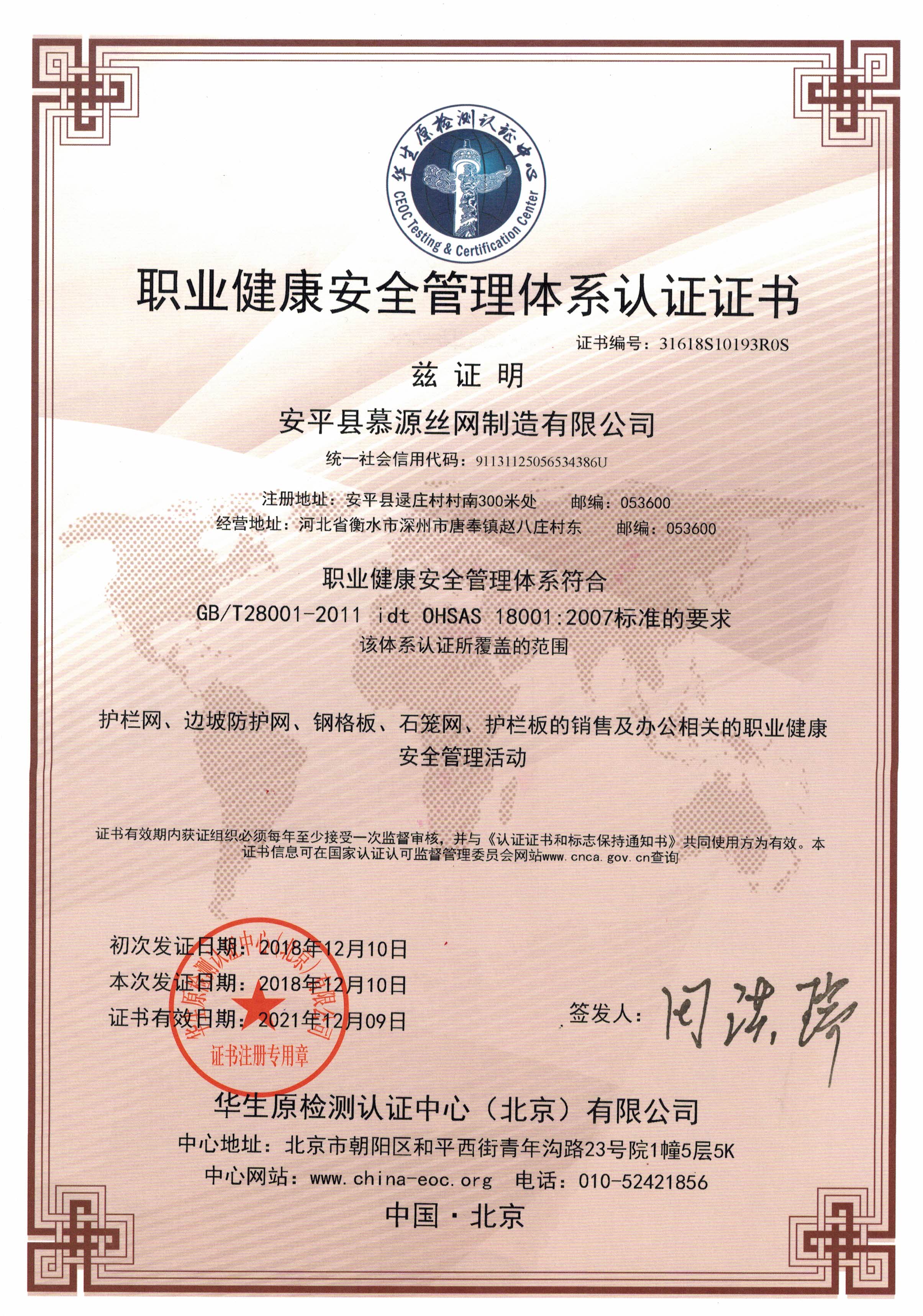安平縣慕源絲網(wǎng)制造有限公司是一家生產(chǎn)、銷售、安裝為一體的實力生產(chǎn)廠家,專業(yè)生產(chǎn)護(hù)欄網(wǎng)、圍欄網(wǎng)、隔離網(wǎng)、防護(hù)網(wǎng)等鐵絲網(wǎng)圍欄產(chǎn)品。我公司業(yè)績資質(zhì)*,可授權(quán)參與施工單位投標(biāo)。出廠檢測報告合格證隨貨同行,請廣大施工單位放心采購。